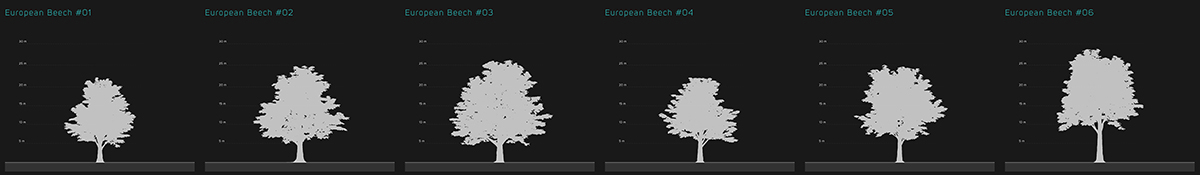 All models are in 4 different season variations: spring, autumn, winter and bare tree (skeletal tree). Therefore, the package includes a total of 78 models.