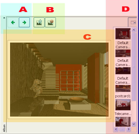 L'obiettivo principale della FINESTRA ALBUM consiste nell'agevolare il recupero delle impostazioni di tutti i parametri attribuiti ai materiali: colori, shader e texture. Conoscere e utilizzare le potenzialità di questa finestra sopperisce all’esigenza di voler salvare gli shader modificati una volta ottenuto, dopo innumerevoli tentativi, il risultato voluto.