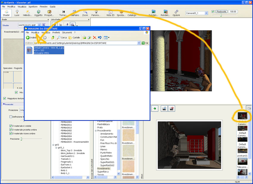 Nota Bene: Le cartoline salvate nuovamente nel software di ritocco immagini diventano inutilizzabili in Artlantis, in quanto le informazioni correlate a shader e texture saranno perse definitivamente.