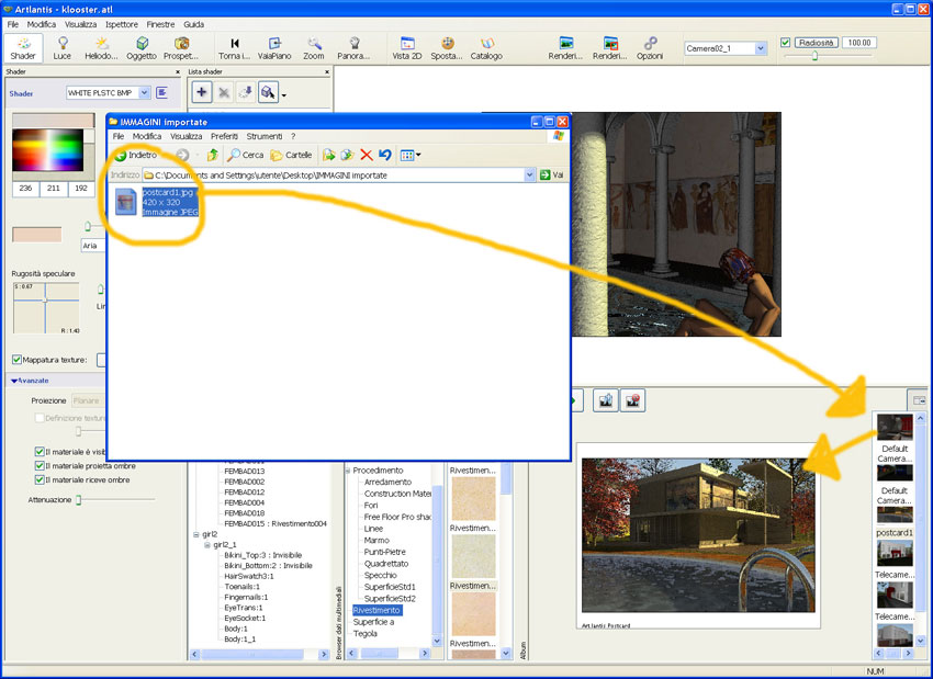 Possiamo utilizzare la Cartolina per scambiare i dati relativi alle impostazioni di un materiale (colori, shader, texture):