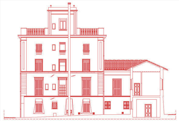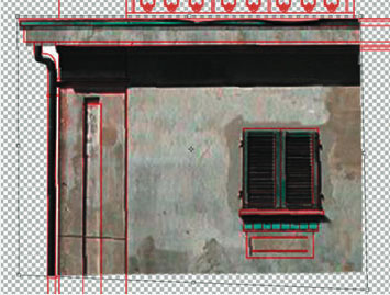 Alla base di tutto c'è, come sempre, il rilievo. E' infatti importante rilevare la posizione esatta delle finestre (e quanti più dettagli sia possibile) in modo da avere dei riferimenti su cui appoggiare le foto da raddrizzare. Una volta disegnato il prospetto a linee 2D con ArchiCAD occorre selezionarle tutte e colorarle, per facilitarne la visualizzazione in Photoshop, di rosso.