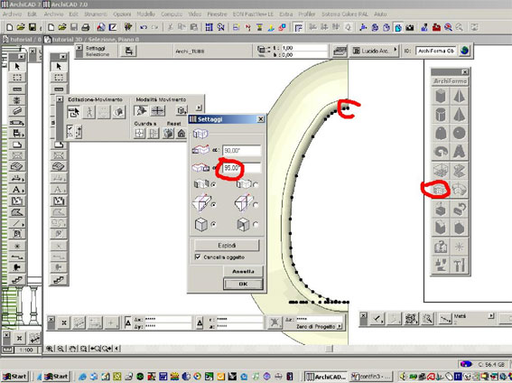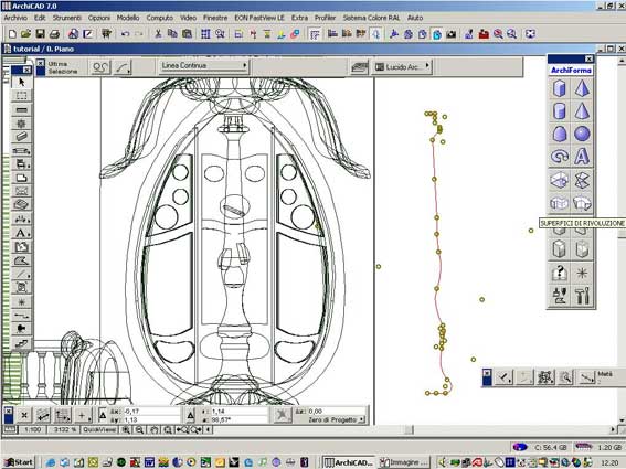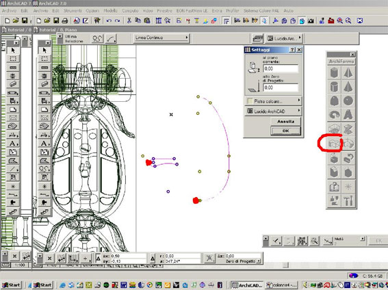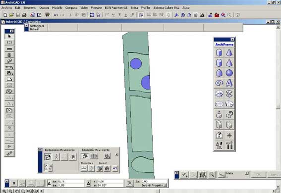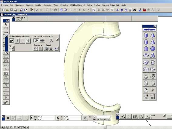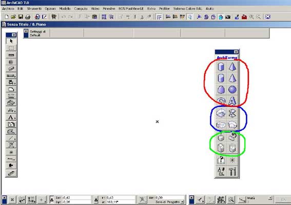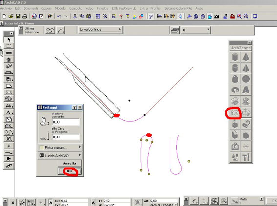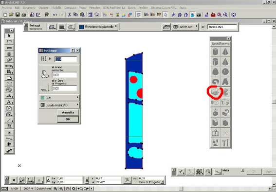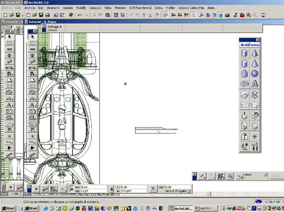 Ora possiamo incominciare a lavorare, per questo lavoro ho usato Archicad nella versione 7, dopo aver installato l’add-on e caricato le sue librerie, aprire la palette di ArchiForma.