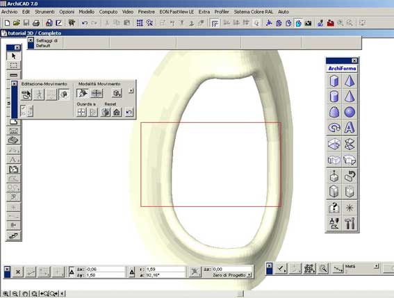 Alziamo nuovamente il nostro oggetto in 3D e con gli strumenti di Archicad (eleva) aggiustiamo gli eventuali errori.
