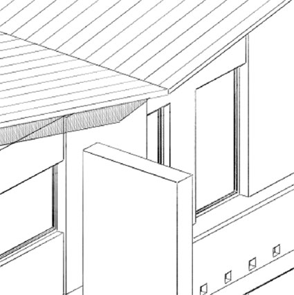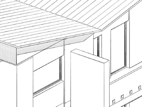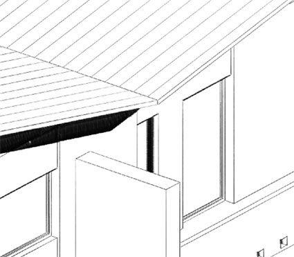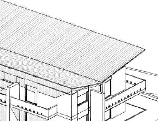 NB: È possibile applicare un qualunque retino, anche personalizzato ma non un retino di una struttura composta. il retino non potrà essere ruotato, quindi può essere necessario creare un nuovo retino ruotato nel seno giusto. Prendiamo per esempio il tetto, nell'immagine che segue è liscio perché alla falda ho assegnato un materiale senza alcun retino vettoriale, il material C01 per l'esattezza. Per prima cosa andiamo nella finestra settagli dei materiali ed assegnamo un retino , un semplice tratteggio verticale.