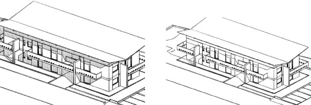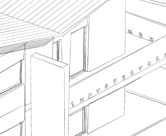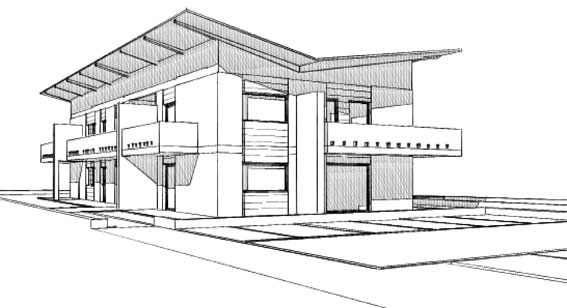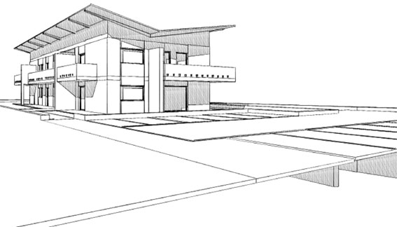 In molti casi è utile e bello nelle presentazioni inserire delle viste, delle piante o delle sezioni realizzate con il motore rendering "schizzo". Per realizzare le viste valgono gli stessi criteri del fotorendering come settaggi della vista: assonometria, prospettiva sezione spaccato 3d, sezione 3d etc. Semplicemente si seleziona un altro motore di rendering. E' possibile ottenere viste con vari livelli di dettaglio, con o senza retinature, molto tecniche oppure più "artistiche".