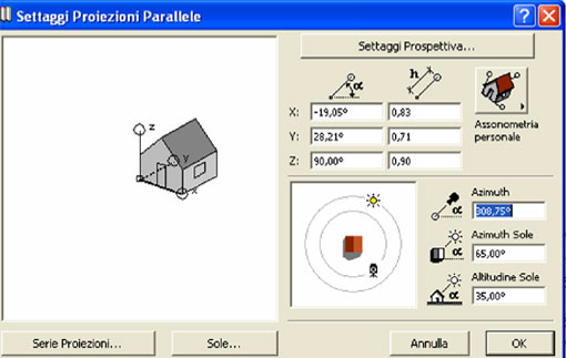Come nel fotorendering la posizione e direzione delle ombre è data dal sole. Per modificare la direzione dell'ombra è sufficiente variare la posizione del sole come nei normali fotorendering e rigenerare la vista 3D.