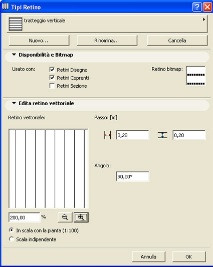 SETTAGGI LINEA RETINATURA per le linee dei retini vettoriali