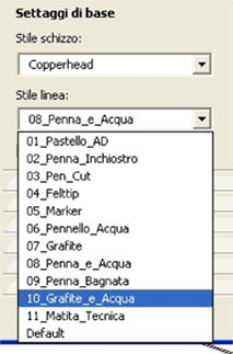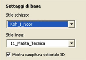 (NB la variazione di uno qualunque di questi parametri farà diventare il nome dello stile di schizzo in personalizzato non più koinor)
