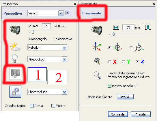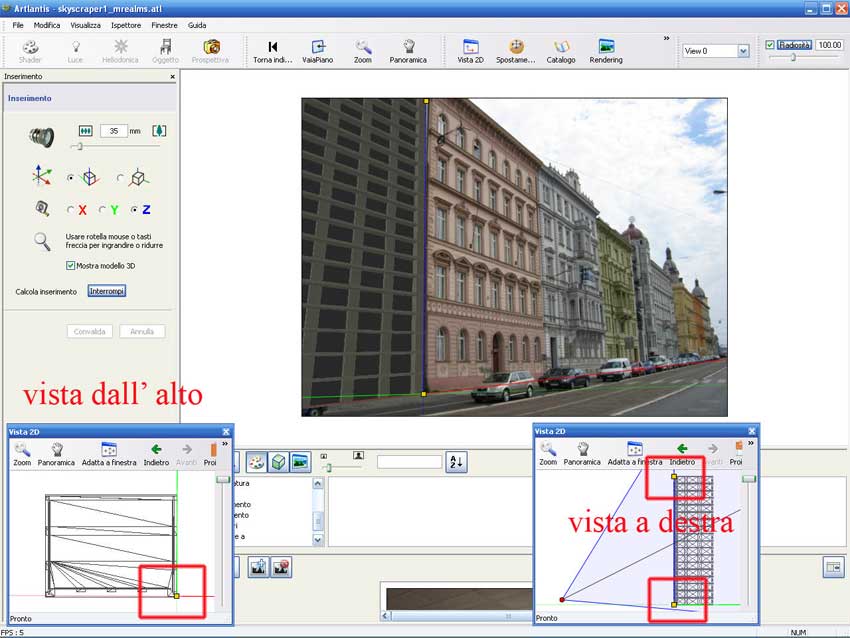 At this point we can start automatic positioning by clicking on the relative button: so the model will be put on the coordinates previously set. I’ts probably that the program has difficult to set correctly vanishing points: if the model continuous rotates, you had mistake whit vanishing points. It’s not necessary to reset the entire model but you can set step by step line on the x –y axis to obtain the correct orientation.