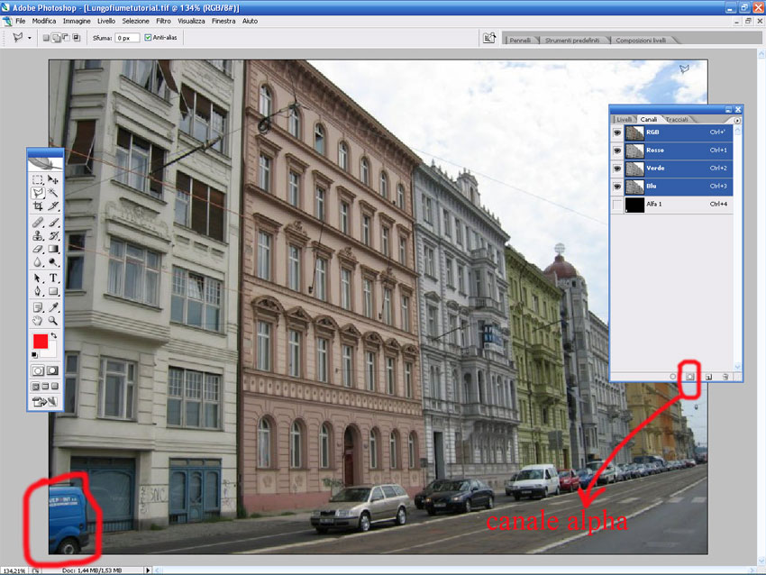 On the canal selection list, we will click on the button in the red square to create the alpha channel.