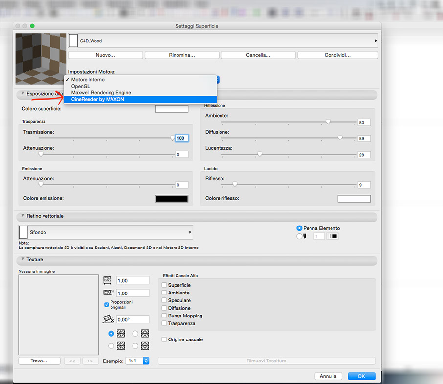 Caricare un materiale di Cinema 4D in ArchiCAD 18