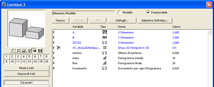 All'inizio dello script 3D viene creata una variabile locale ("H") a cui si assegna alo stesso valore del parametro "minimo" cioè l'altezza iniziale del secondo blocco.