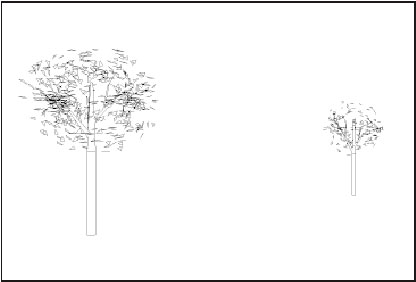 Questo vale per qualsiasi tipo di elemento ma nel caso di elementi arborei l'impatto è più forte: essi infatti hanno bisogno di una definizione geometrica piuttosto articolata per potersi avvicinare a una caratterizzazione "naturale", compatibile con viste ravvicinate. E' ovvio che la stessa definizione non va più bene per distanze più grandi nel qual caso si ottengono macchie scure prodotte dal sovrapporsi di un gran numero di linee in una piccola area di disegno del foglio. Come fare per dare soluzione a questo antipatico problema: una soluzione c'è ed è anche molto semplice: si tratta di adattare il livello di definizione alla distanza di osservazione. Ma come si fa? Tra le Variabili Globali che ci fornisce il GDL, ve ne sono alcune che fanno il caso nostro e sono: K~, L~, M~ che corrispondono alle coordinate cartesiane della posizione dell'osservatore e X~, Y~, Z~ corrispondenti alle coordinate cartesiane della posizione del simbolo. Certamente saprete che le Variabili Globali sono in grado di tenere conto, in modo automatico, delle condizioni generali del contesto progettuale, cioè dei settaggi correnti di ArchiCAD e di alcuni dei suoi elementi utilizzati: ciò significa, per esempio, tenere conto automaticamente della Scala di Disegno, oppure dello spessore del muro nel quale sto inserendo una finestra, oppure ancora dell'altezza del piano corrente. In questo caso ci consentono di riprodurre una logica di disegno, cioè quella per cui il livello di definizione di un elemento decresce all'aumentare della sua distanza dall'osservatore. Vediamo quindi come strutturare una soluzione.