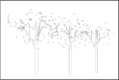 Ai tre indirizzi 30,40,50 corrispondono diversi valori assegnati alla variabile t che poi regola il Ciclo. A questo punto il gioco, sostanzialmente, è fatto e porta ad un ulteriore vantaggio implicito non irrilevante: far disegnare una chioma meno folta per gli alberi lontani non produce solo un disegno più appropriato ma anche un disegno più veloce! Nelle figure 1, 2 e 3 potete verificare il risultato sul "Viale" sugli "Alberi Vicini" e sugli "Alberi Lontani". Ora, quello che abbiamo visto è solo un esempio ma è molto utile per mostrare una logica di procedere nell'affrontare problemi analoghi anche con altri tipi di elementi.