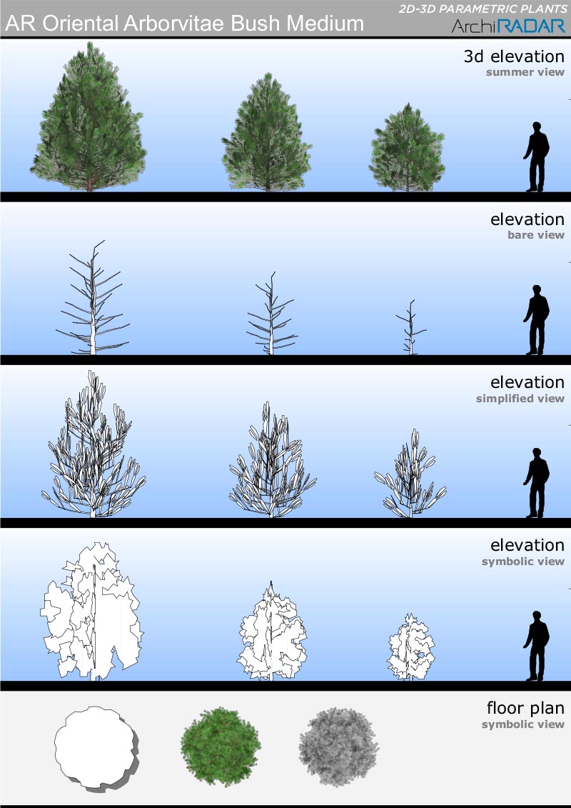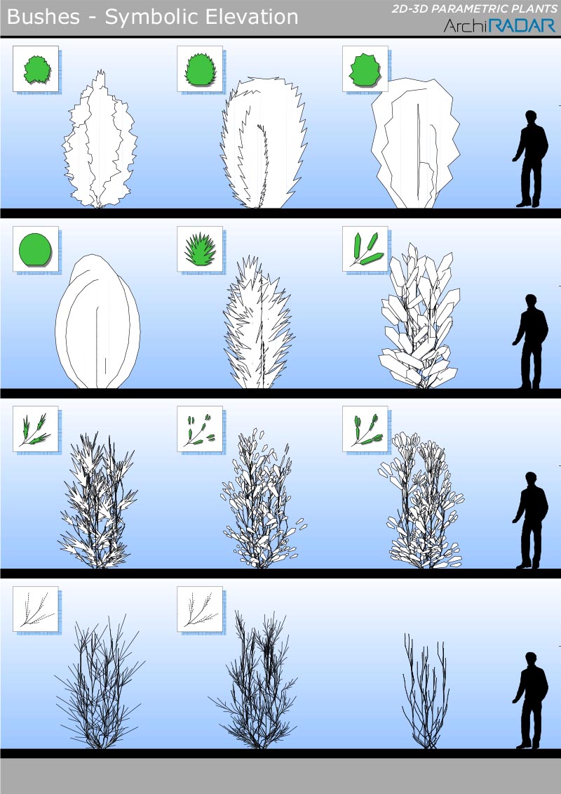 Gli oggetti sono realizzati con un basso numero di poligoni, hanno un fattore di crescita reale in base alla dimensione e inoltre hanno una corrispondente vista simbolica semplificata in prospetto e sezione.Ottimizzati infine per BIMX.